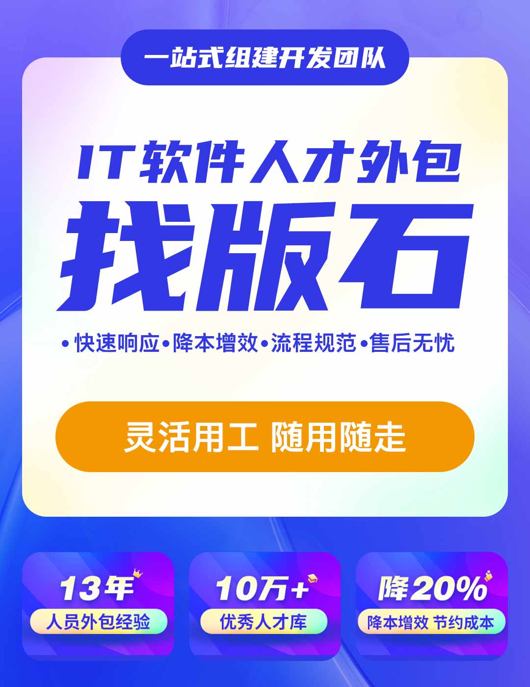 版石软件专注it人力外包13年,服务覆盖每一个主流IT岗位,包括Java、web前端、.NET、Android、IOS、PHP、C#、运维、UI、软件测试等